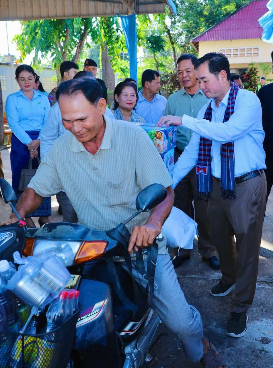 (កំពង់ចាម)៖ អភិបាលខេត្តកំពង់ចាម ឯកឧត្តម អ៊ុន ចាន់ដា និងក្រុមការងារនៅរសៀលថ្ងៃទី១៣ ខែវិច្ឆិកា ឆ្នាំ ២០២៥ នេះ បាននាំអំណោយរបស់រាជរដ្ឋាភិបាល ផ្ដល់ជូនប្រជាពលរដ្ឋចំនួន ១៧១គ្រួសារដែលរងគ្រោះដោយទឹកជំនន់មកពីបួនឃុំនៅក្នុងស្រុកកោះសូទិន។