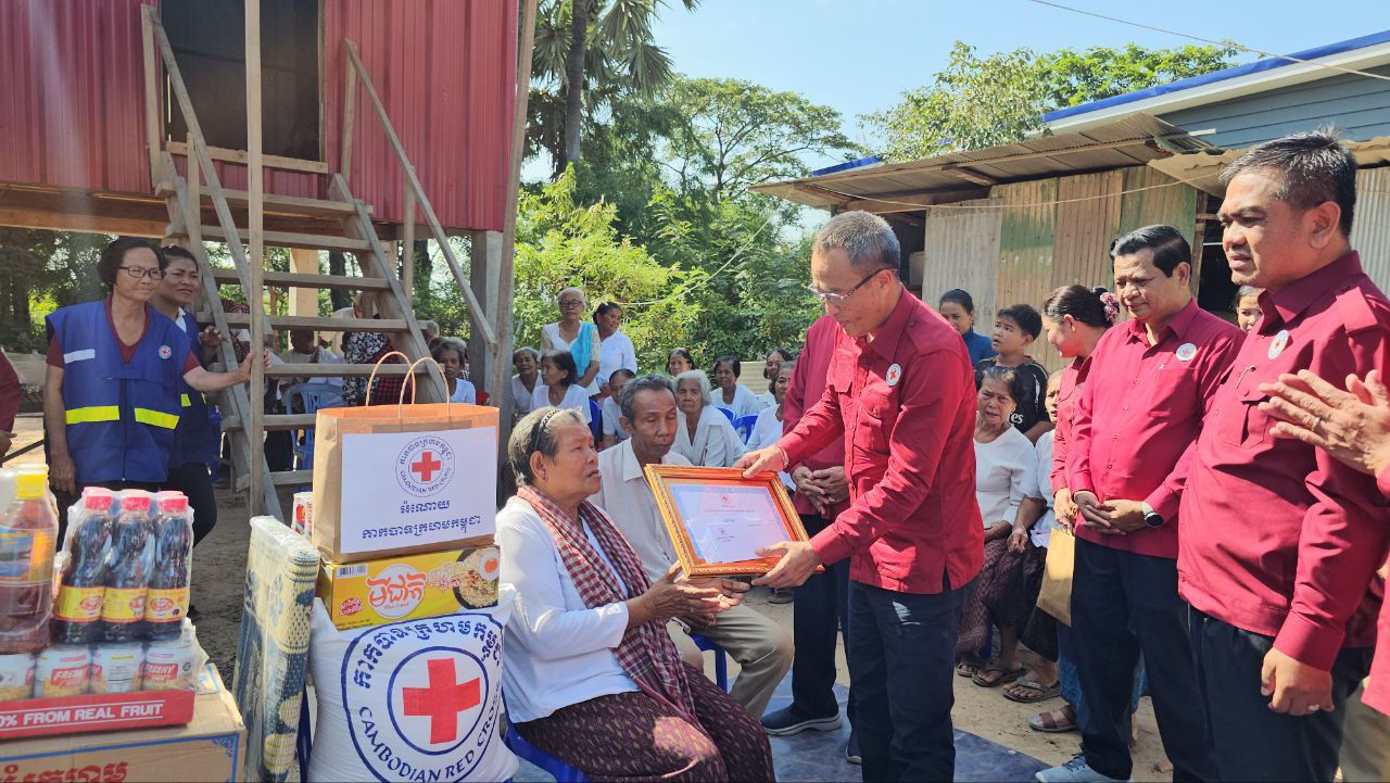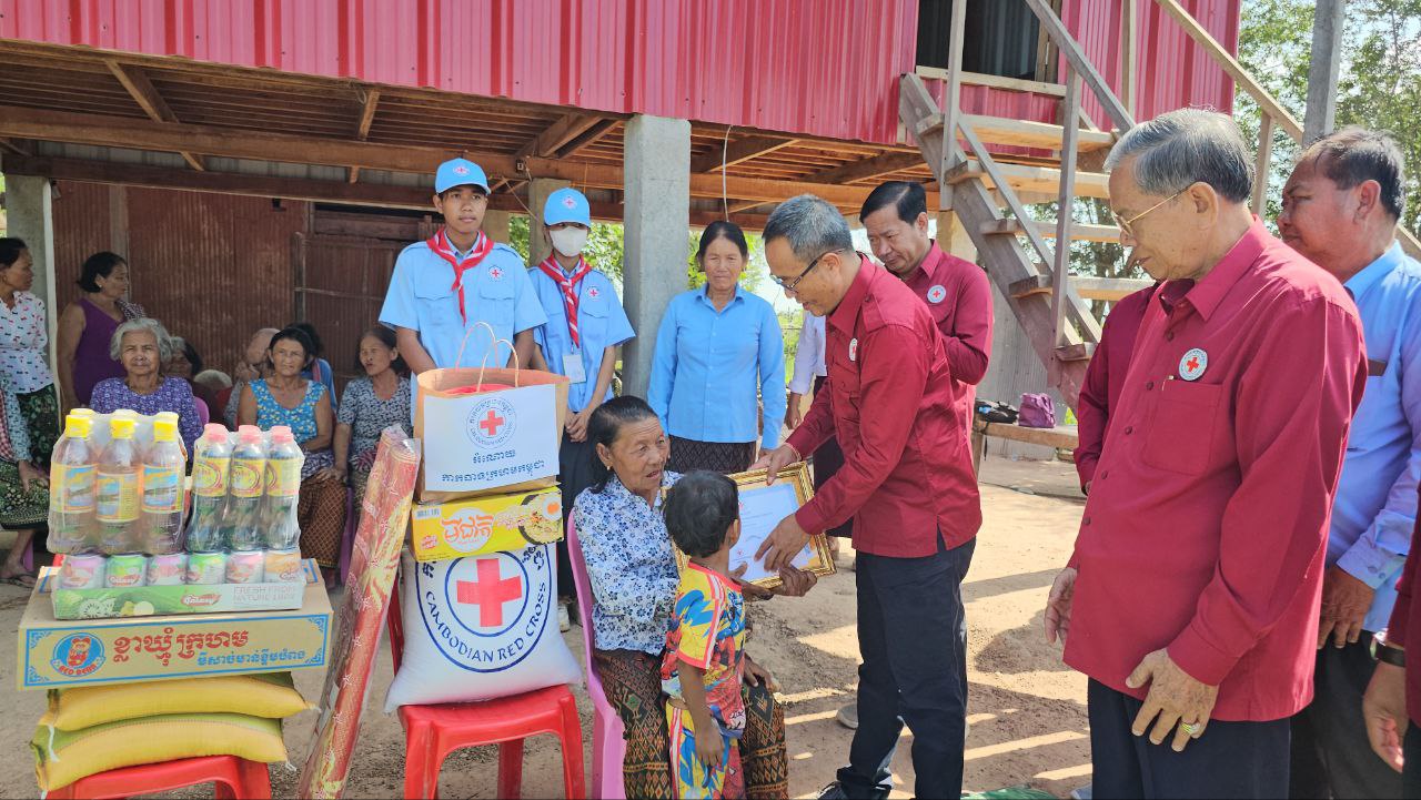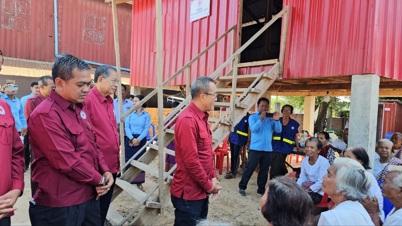 (ព្រៃវែង)៖ នៅថ្ងៃទី៨ ខែសីហា ឆ្នាំ២០២៥ ឯកឧត្តម សួន សុម៉ាលីន ប្រធានគណៈកម្មាធិការសាខាខេត្ត បានដឹកនាំគណៈកម្មាធិការសាខា ប្រតិភូអមដំណើរ ក្រុមប្រតិបត្តិសាខា ក្រុមការងារអនុសាខាស្រុក ក្រុមកាកបាទក្រហមឃុំ អ្នកស្ម័គ្រចិត្តភូមិ ទីប្រឹក្សាយុវជន និងយុវជនកាកបាទក្រហមកម្ពុជាចុះសួរសុខទុក្ខ ប្រគល់ផ្ទះចំនួន ២ខ្នង ទំហំ ៤មx៦ម ធ្វើអំពីឈើ ដំបូលប្រក់ក្បឿងជ័រ ជញ្ជាំងជ័រ និងបង្គន់អនាម័យចំនួន ២ ក្នុងផែនការឆ្នាំ២០២៥ ជាអំណោយរបស់សាខាខេត្តជូនដល់គ្រួសារក្រីក្រ ២គ្រួសារ នៅឃុំស៊ាងឃ្វាង និងឃុំត្របែក ស្រុកកំចាយមារ ខេត្តព្រៃវែង។