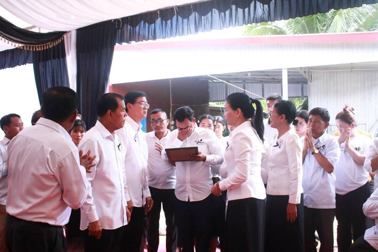 (ខេត្តប៉ៃលិន)៖ ឯកឧត្តមទេសរដ្ឋមន្ត្រី អ៊ី ឈាន ប្រធានក្រុមការងាររាជរដ្ឋាភិបាលចុះមូលដ្ឋានខេត្តប៉ៃលិន និងលោកជំទាវ បាន ស្រីមុំ ប្រធានគណៈកម្មាធិការសាខាកាកបាទក្រហមកម្ពុជាខេត្ត នាព្រឹកថ្ងៃទី១៤ ខែធ្នូ ឆ្នាំ២០២៥ បាននាំយកសាររំលែកទុក្ខ និងថវិកាចំនួន ១០លានរៀលរបស់សម្តេចកិត្តិព្រឹទ្ធបណ្ឌិត ប៊ុន រ៉ានី ហ៊ុន សែន ប្រធានកាកបាទក្រហមកម្ពុជា ចូលរួមរំលែកទុក្ខយ៉ាងក្រៀមក្រំជាមួយក្រុមគ្រួសារនៃសពលោកពលទោ វី កក្កដា ដែលបានពលីជីវិតនៅសមរភូមិជួរមុខ ប្រាសាទតាក្របី ក្នុងសង្គ្រាមឈ្លានពានកាលពីថ្ងៃទី១២ ខែធ្នូ ឆ្នាំ២០២៥ ក្នុងអាយុ២១ឆ្នាំ។