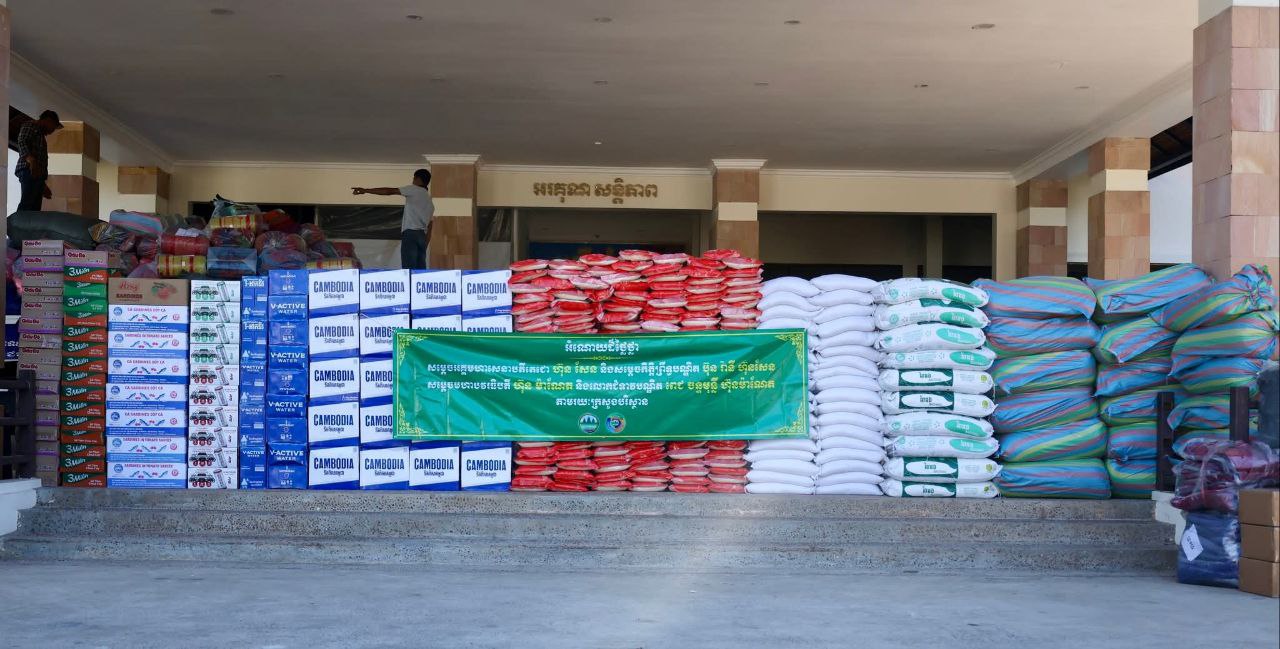 សូមបញ្ជាក់ថា អំណោយដ៏ថ្លៃថ្លាជាស្បៀងអាហារ និងសម្ភារៈប្រើប្រាស់របស់សម្តេចតេជោ ហ៊ុន សែន ប្រធានព្រឹទ្ធសភា និងសម្តេចកិត្តិព្រឹទ្ធបណ្ឌិត ប៊ុន រ៉ានី ហ៊ុន សែន និងសម្តេចធិបតី ហ៊ុន ម៉ាណែត នាយករដ្ឋមន្ត្រីនៃព្រះរាជាណាចក្រកម្ពុជា និងលោកជំទាវបណ្ឌិត ពេជ ចន្ទមុន្នី តាមរយៈក្រសួងបរិស្ថានដែលបានត្រូវប្រគល់ជូននាពេលនេះរួមមាន៖ ទឹកសុទ្ធដបធំ អំបុក អង្ករ មី សំលៀកបំពាក់ ខោអាវ ភួយ ត្រីខទឹកសុទ្ធ ទឹកក្រូច នំក្រៀម ដំណាប់ស្វាយរួមជាមួយគ្រឿងឧបភោគបរិភោគជាច្រើនផ្សេងទៀត៕