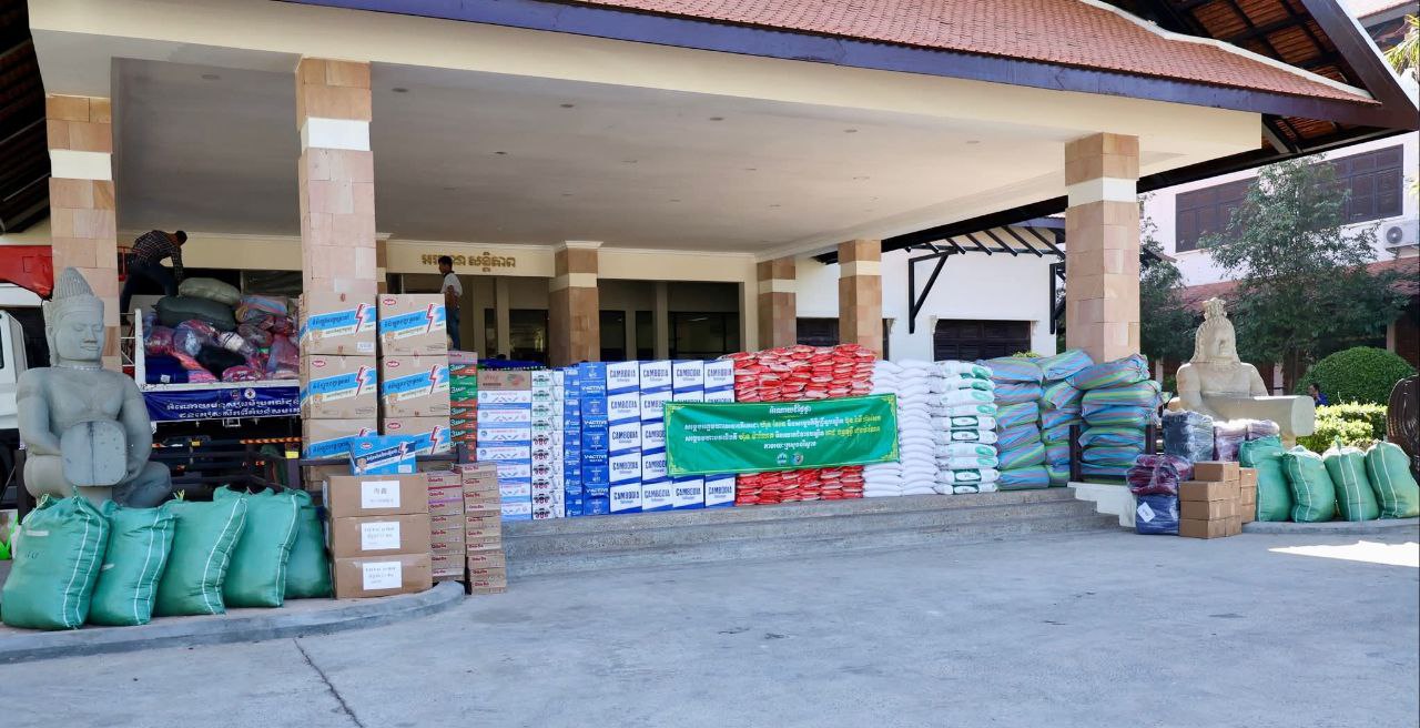 (ខេត្តសៀមរាប)៖ ឈរលើស្មារតី «ខ្មែរស្រឡាញ់ខ្មែរ ខ្មែរជួយខ្មែរ ខ្មែរតែមួយ» នាព្រឹកថ្ងៃទី២១ ខែធ្នូ ឆ្នាំ២០២៥នេះ ឯកឧត្តមបណ្ឌិត អ៊ាង សុផល្លែត រដ្ឋមន្ត្រីក្រសួងបរិស្ថាន បានដឹកនាំថ្នាក់ដឹកនាំក្រសួងសាខាសមាគមនារីកម្ពុជាដើម្បីសន្តិភាពនិងអភិវឌ្ឍន៍ក្រសួងបរិស្ថាន សហភាពសហព័ន្ធយុវជនកម្ពុជាក្រសួងបរិស្ថាន រួមជាមួយដៃគូសហការបាននាំយកអំណោយដ៏ថ្លៃថ្លាជាស្បៀងអាហារ និងសម្ភារៈប្រើប្រាស់របស់សម្តេចអគ្គមហាសេនាបតីតេជោ ហ៊ុន សែន ប្រធានព្រឹទ្ធសភា និងសម្តេចកិត្តិព្រឹទ្ធបណ្ឌិត ប៊ុន រ៉ានី ហ៊ុន សែន និងសម្តេចមហាបវរធិបតី ហ៊ុន ម៉ាណែត នាយករដ្ឋមន្ត្រីនៃព្រះរាជាណាចក្រកម្ពុជា និងលោកជំទាវបណ្ឌិត ពេជ ចន្ទមុន្នី តាមរយៈក្រសួងបរិស្ថាន មកប្រគល់ជូនរដ្ឋបាលខេត្តសៀមរាបដើម្បីបន្តយកទៅចែកជូនដល់វីរកងទ័ពជួរមុខ និងជនភៀសសឹកពីសង្រ្គាមឈ្លានពានរបស់ប្រទេសថៃមកលើអធិបតេយ្យដែនដីរបស់ប្រទេសកម្ពុជា។