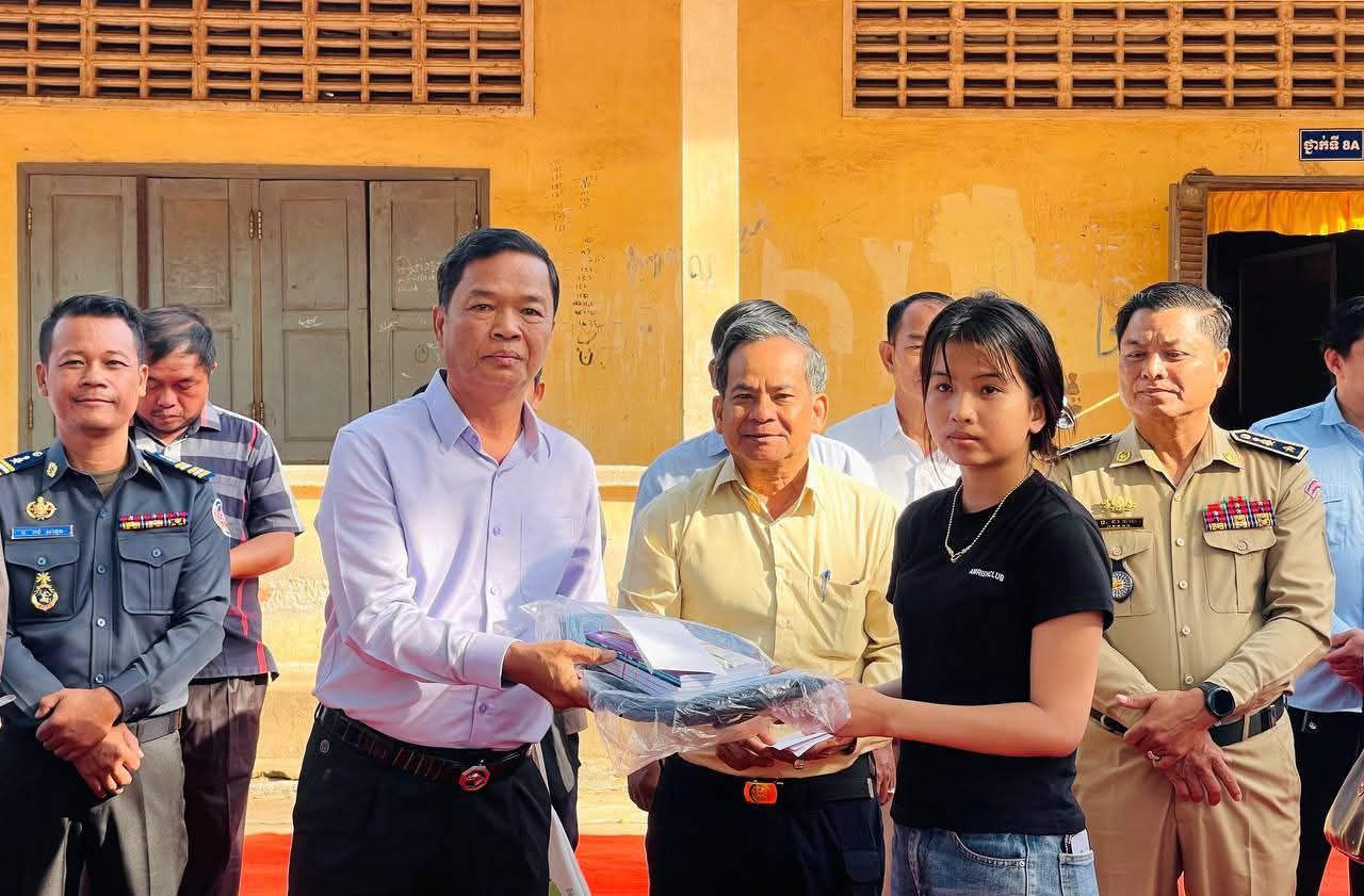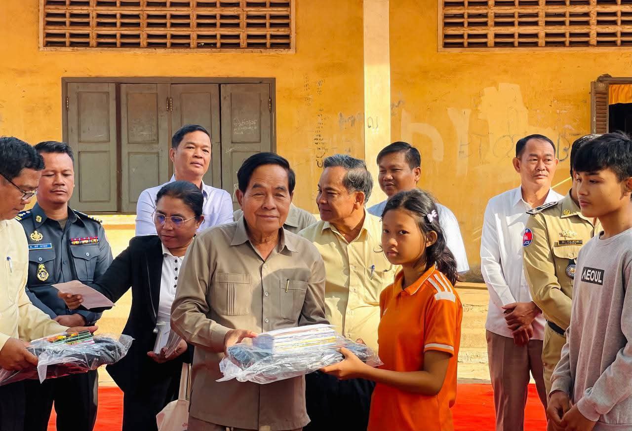 ក្នុងឱកាសនោះដែរ លោកអភិបាលរងខេត្តក៏បាននាំយកម្ភារៈសិក្សា និងថវិកាមួយចំនួនដែលជាអំណោយដ៏ថ្លៃថ្លារបស់សម្ដេចមហាបវរធិបតី ហ៊ុន ម៉ាណែត នាយករដ្ឋមន្ត្រីនៃកម្ពុជា និងលោក ពេជ្រ ចន្ទមុន្នី ចែកជូនក្មួយៗសិស្សានុសិស្សទាំង ៤៨នាក់ផងដែរ។