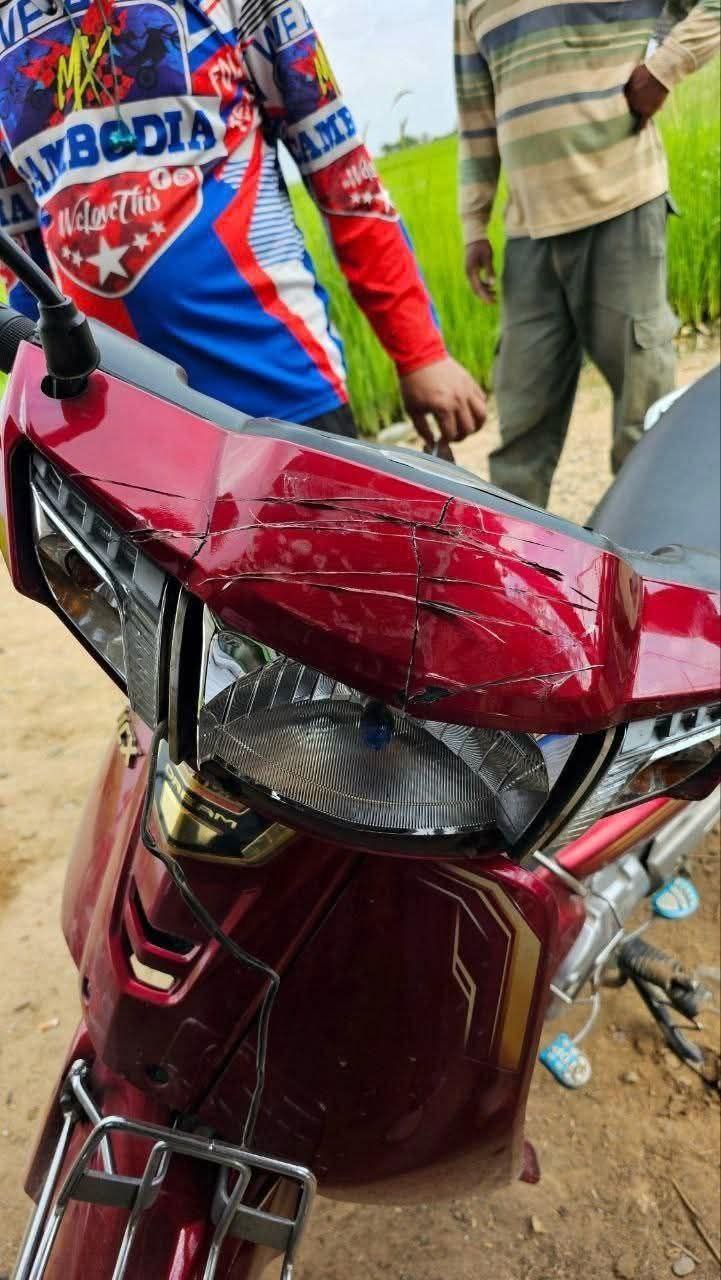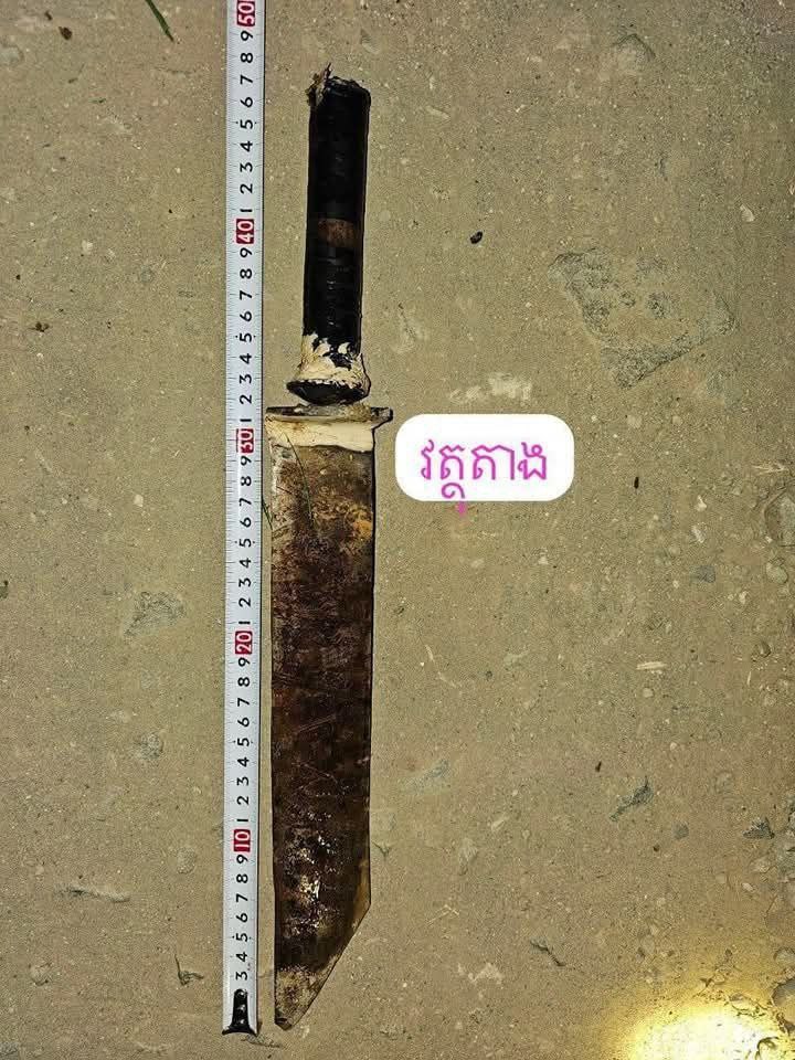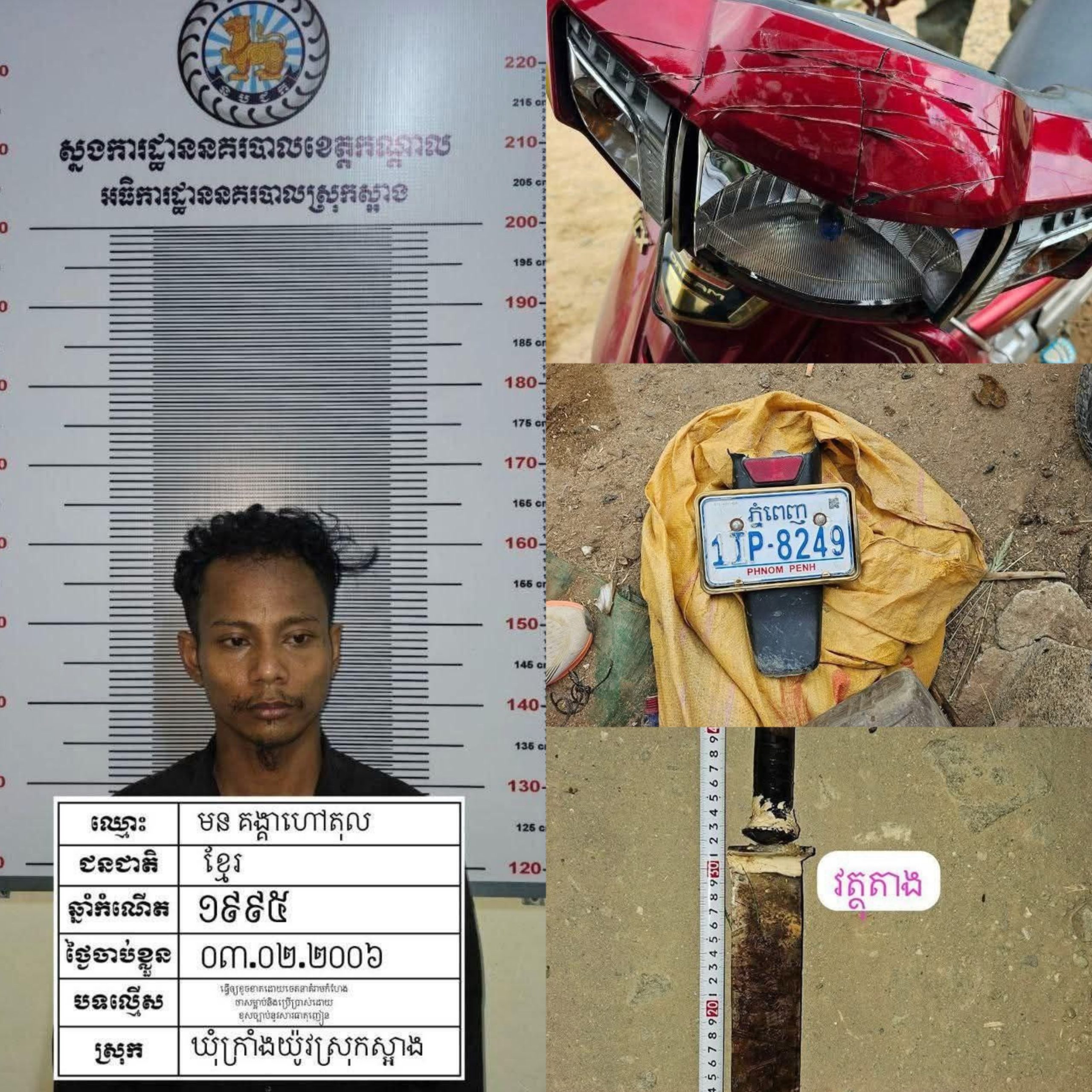 មិនតែប៉ុណ្ណោះ ជនសង្ស័យបានយកកាំបិតដងដែកប្រវែងប្រហែល ០.៤៧ម៉ែត្រ កាប់បំផ្លាញម៉ូតូម៉ាកហុងដាឌ្រីម ពណ៌ក្រហម ពាក់ស្លាកលេខ ភ្នំពេញ 1JP-8249 បណ្ដាលឲ្យខូចខាតយ៉ាងធ្ងន់ធ្ងរហើយស្រែកគំរាមថានឹងកាប់សម្លាប់ជនរងគ្រោះទៀតផងមុននឹងបោះកាំបិតចោលក្នុងស្រែគេចខ្លួន។