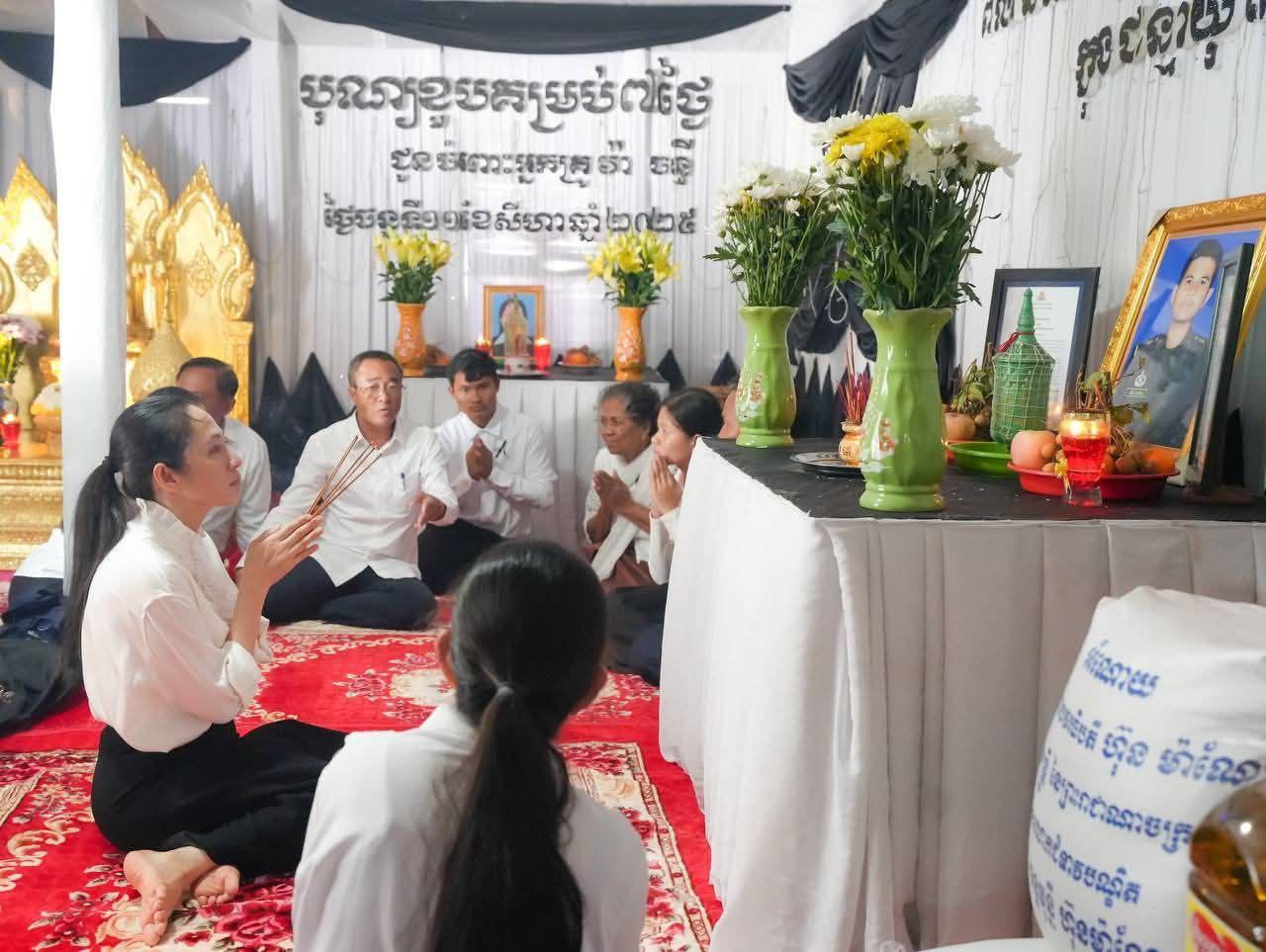 (ព្រៃវែង)៖ លោកជំទាវបណ្ឌិត ពេជ ចន្ទមុន្នី ហ៊ុន ម៉ាណែត បានបន្តអញ្ជើញដឹកនាំក្រុមការងារចូលរួមគោរពវិញ្ញាណក្ខន្ធវីរយុទ្ធជនពលីនៅសមរភូមិមុខក្នុងបុព្វហេតុការពារបូរណភាពទឹកដីកន្លងទៅនៅទិសខេត្តព្រះវិហារ និងខេត្តឧត្តរមានជ័យ ស្ថិតក្នុងខេត្តព្រៃវែង នៅព្រឹកថ្ងៃទី១១ ខែសីហា ឆ្នាំ២០២៥ នៅស្រុកព្រះស្តេច និងស្រុកកំពង់ត្របែក ខេត្តព្រៃវែង។