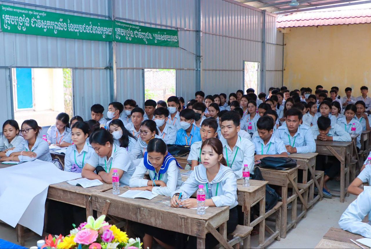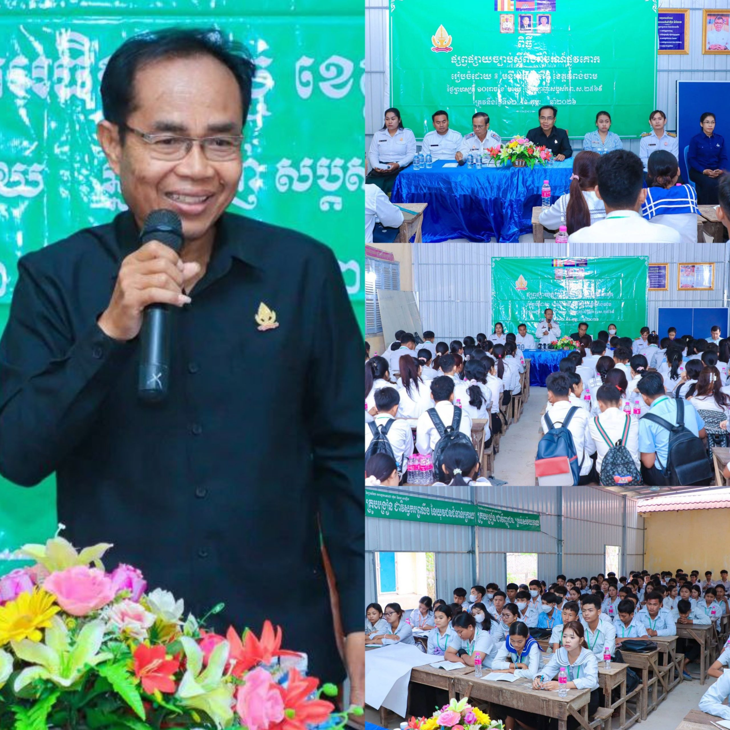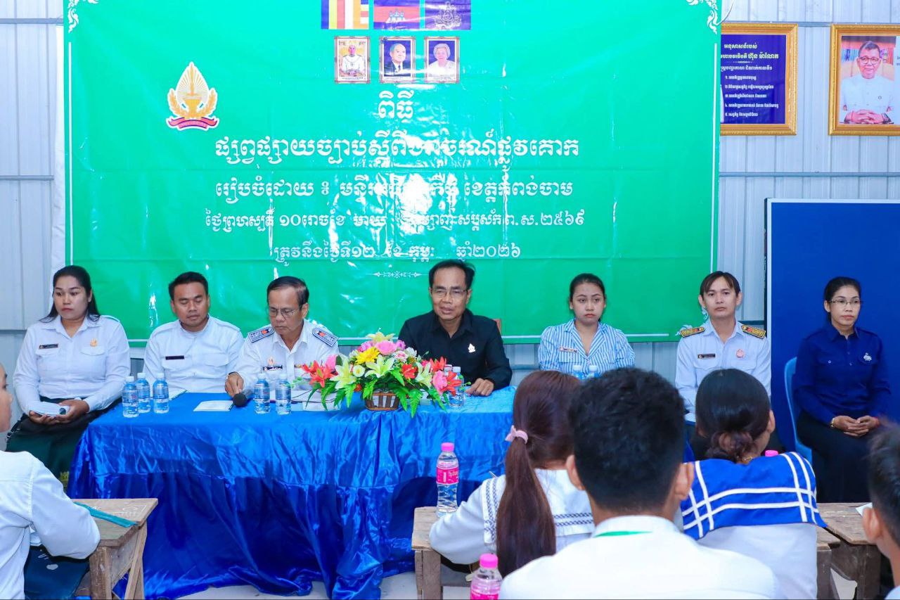 (កំពង់ចាម)៖ នាថ្ងៃទី១២ ខែកុម្ភៈ ឆ្នាំ២០២៦ មន្ទីរអធិការកិច្ចខេត្តកំពង់ចាមសហការជាមួយគណៈគ្រប់គ្រងសាលា បានរៀបចំកម្មវិធីផ្សព្វផ្សាយច្បាប់ស្តីពីចរាចរណ៍ផ្លូវគោក ដល់សិស្សានុសិស្សនៅសាលាវិទ្យាល័យសម្តេចតេជោ ហ៊ុន សែន សង្កើប ស្ថិតនៅភូមិសង្កើប ឃុំសំបូរ ស្រុកបាធាយ ខេត្តកំពង់ចាម។