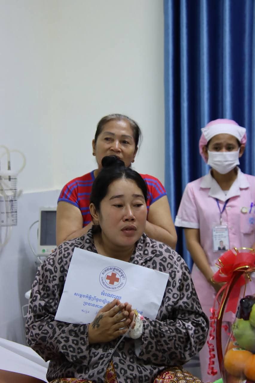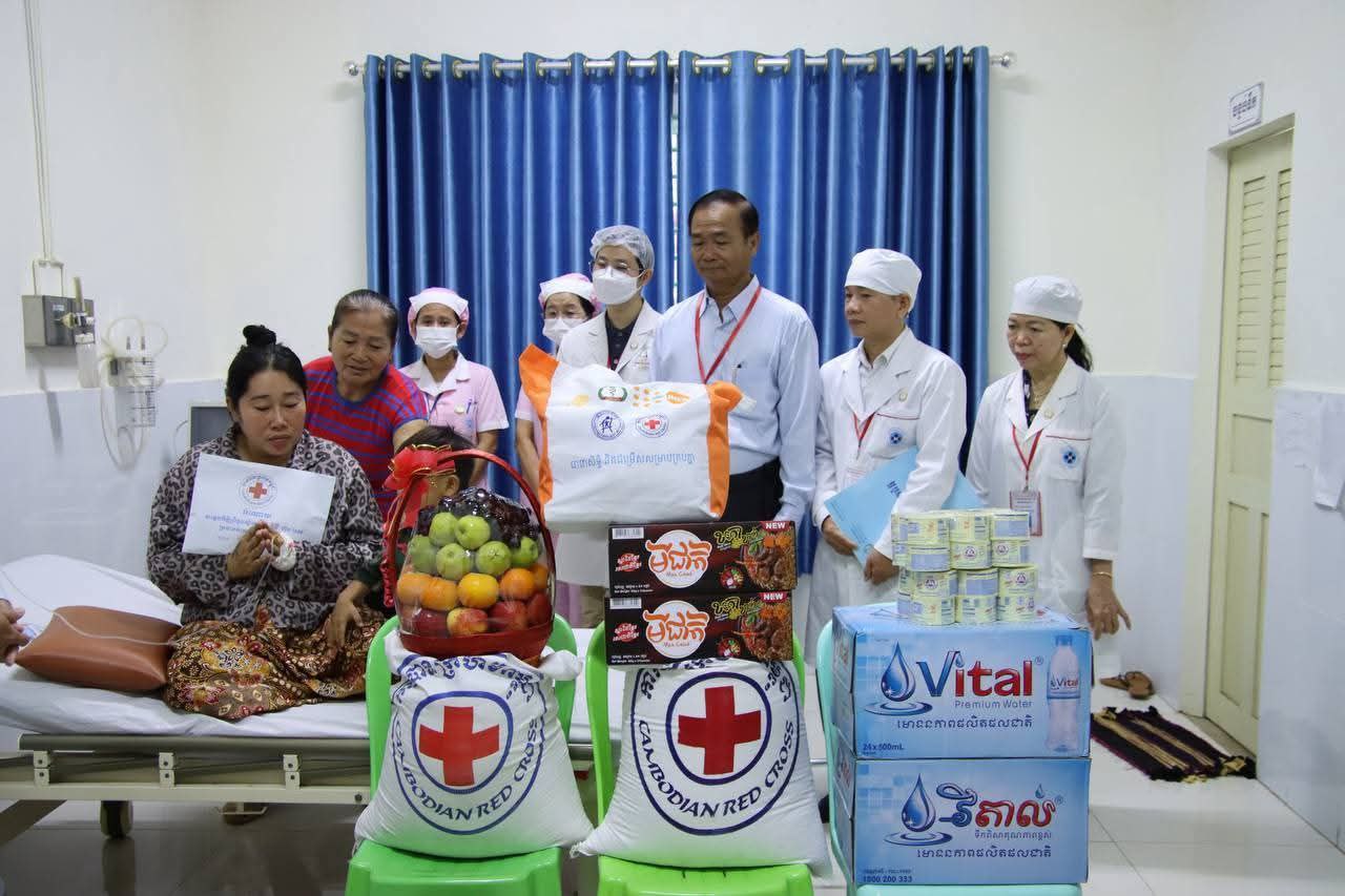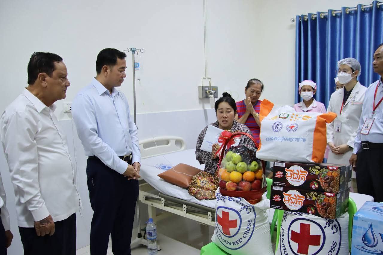 នៅព្រឹកថ្ងៃចន្ទ ទី១១ ខែសីហា ឆ្នាំ ២០២៥ នេះ ឯកឧត្តម អ៊ុន ចាន់ដា អភិបាលខេត្តកំពង់ចាម និងជាប្រធានគណៈកម្មាធិការសាខាកាកបាទក្រហមខេត្តរួមដំណើរដោយឯកឧត្តម ខ្លូត ផន ប្រធានក្រុមប្រឹក្សាខេត្ត ឯកឧត្តម នាយកសាខា, ប្រធានមន្ទីរសុខាភិបាលនៃរដ្ឋបាលខេត្ត, ប្រធាន អនុប្រធានមន្ទីរពេទ្យបានអញ្ជើញចុះសួរសុខទុក្ខ លោកស្រី ជា មួយលាភ អាយុ៣៥ឆ្នាំ ជាភរិយាយោធិនជួរមុខទិសមុំបីបានភៀសសឹកពីភូមិសែនរុងរឿង១ ឃុំទឹកក្រហម ខេត្តព្រះវិហារ ដែលបានត្រៀមសម្រាលកូន នៅមន្ទីរពេទ្យបង្អែកខេត្តកំពង់ចាម។