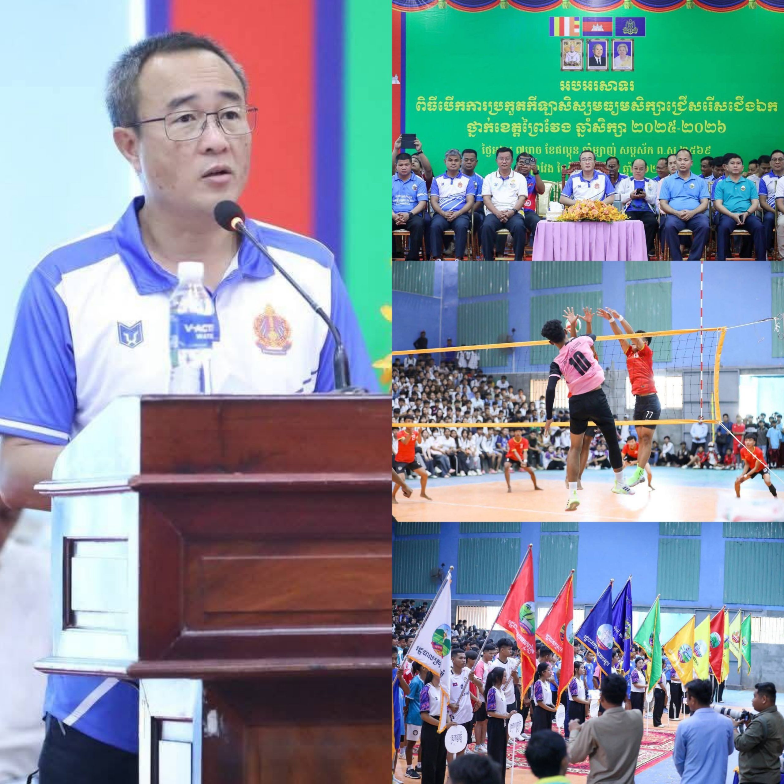 (ព្រៃវែង)៖ នាព្រឹកថ្ងៃទី១០ ខែមីនា ឆ្នាំ២០២៦នេះ ឯកឧត្តម សួន សុម៉ាលីន អភិបាលនៃគណៈអភិបាលខេត្តព្រៃវែងបានអញ្ជើញជាអធិបតីក្នុងពិធីបើកការប្រកួតកីឡាសិស្សមធ្យមសិក្សាជ្រើសរើសជើងឯកថ្នាក់ខេត្ត ប្រចាំឆ្នាំសិក្សា ២០២៥-២០២៦។ ពិធីនេះមានការអញ្ជើញចូលរួមពីសំណាក់ លោក លោកស្រី អភិបាលរងខេត្ត ថ្នាក់ដឹកនាំមន្ទីរជុំវិញខេត្ត កងកម្លាំងប្រដាប់អាវុធ លោកគ្រូ អ្នកគ្រូ និងក្មួយៗសិស្សានុសិស្សជាកីឡាករ កីឡាការិនីយ៉ាងច្រើនកុះករ។