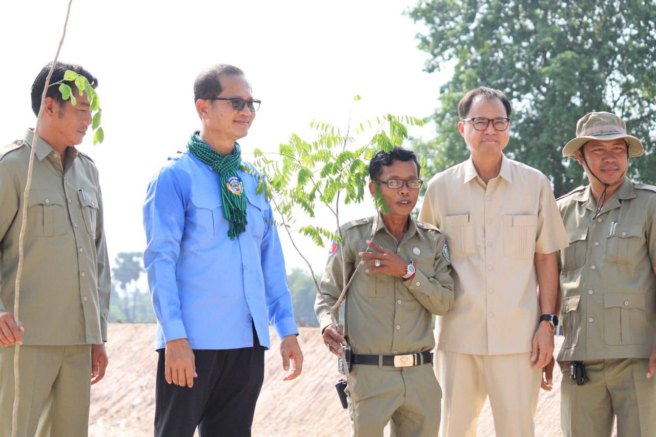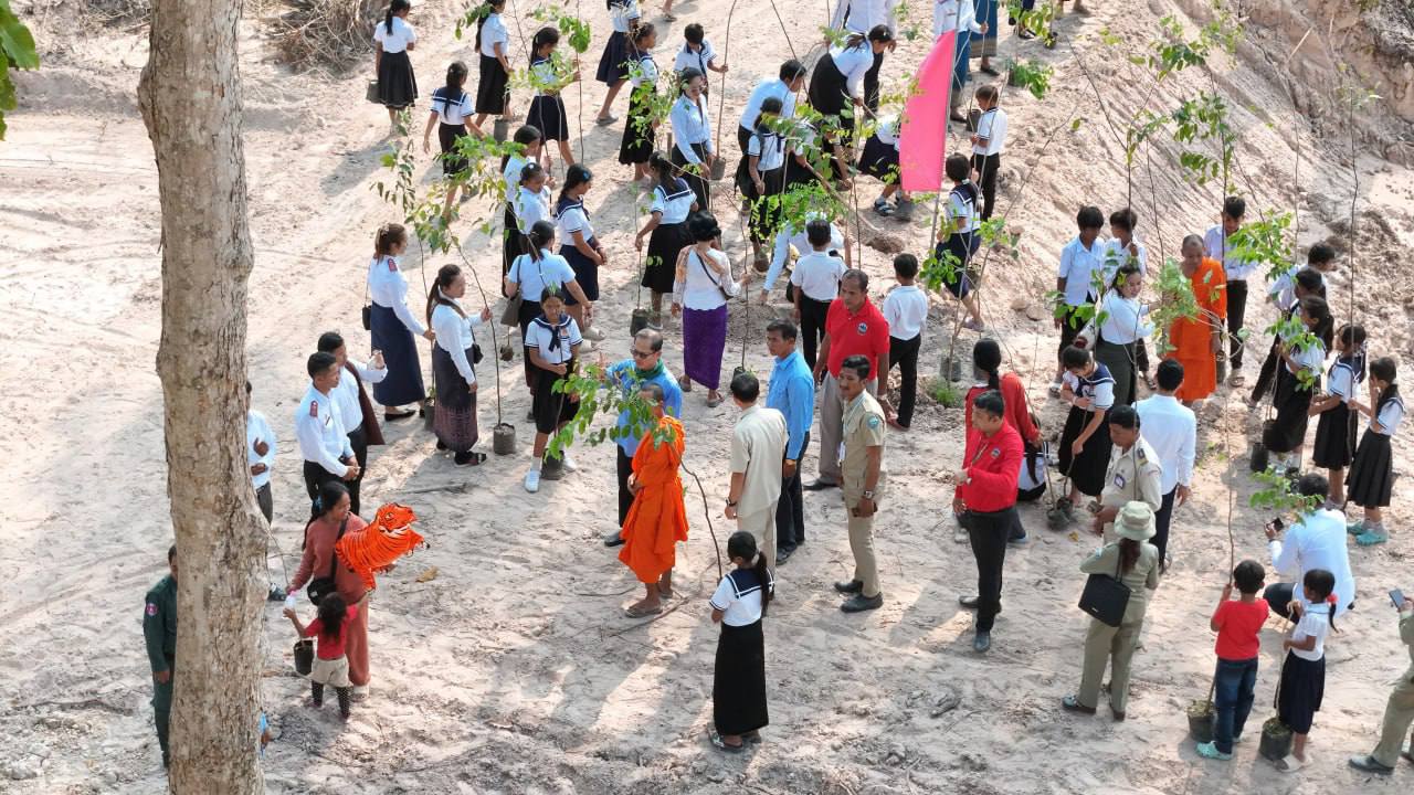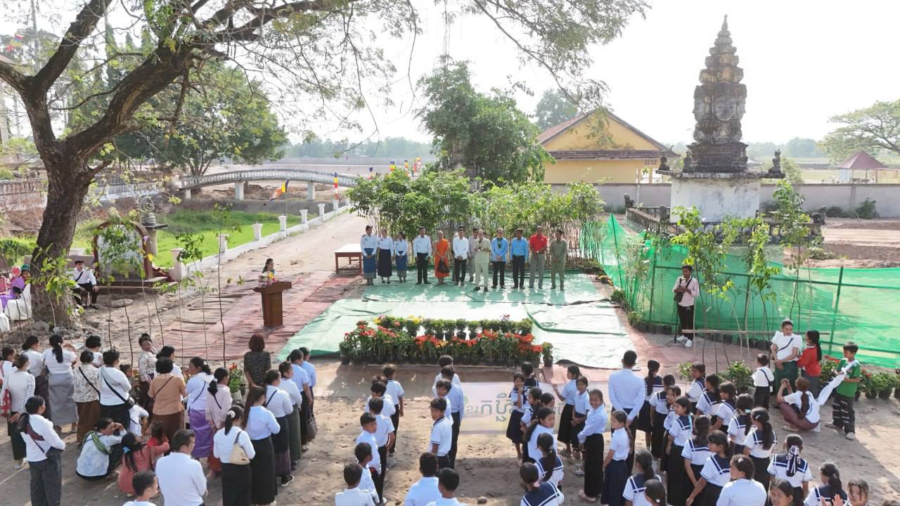 (កំពង់ស្ពឺ)៖ ឯកឧត្ដមបណ្ឌិត សាម អីន រដ្ឋលេខាធិការ តំណាងដ៏ខ្ពង់ខ្ពស់ឯកឧត្ដមបណ្ឌិត អ៊ាង សុផល្លែត រដ្ឋមន្ត្រីក្រសួងបរិស្ថាន អមដំណេីរដោយ ឯកឧត្ដម ង៉ូវ បូរីណា រដ្ឋលេខាធិការ ក្រសួងបរិស្ថានបានអញ្ជើញជាអធិបតីក្នុងយុទ្ធនាការ “ពន្លកបៃតង” នាព្រឹកថ្ងៃទី២២ ខែមីនា ឆ្នាំ២០២៦ ស្ថិតនៅក្នុងបរិវេណវត្តអង្គក្ដី ភូមិព្រៃស្មាច់ ឃុំព្រៃវិហារ ស្រុកគងពិសី ខេត្តកំពង់ស្ពឺ។