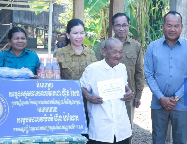 (ខេត្តប៉ៃលិន)៖ លោកជំទាវបណ្ឌិត បាន ស្រីមុំ អភិបាលនៃគណៈអភិបាលខេត្ត និងជាប្រធានសមាគមអតីតយុទ្ធជន និងនិវត្តជនកម្ពុជាខេត្តប៉ៃលិនអមដំណើរដោការងារ កាលពីថ្ងៃទី២៩ ខែមីនា ឆ្នាំ២០២៦ បានអញ្ជើញប្រគល់ផ្ទះ១ខ្នងដែលជាអំណោយដ៏ថ្លៃថ្លារបស់សម្តេចអគ្គមហាសេនាបតីតេជោ ហ៊ុន សែន ប្រធានព្រឹទ្ធសភា និងជាប្រធានសមាគមអតីតយុទ្ធជន និងនិវត្តជនកម្ពុជា និងកសាងដោយសម្ដេចមហាបវរបតី ហ៊ុន ម៉ាណែត នាយករដ្ឋមន្ត្រី និងជាអនុប្រធានទី១ សមាគមអតីតយុទ្ធជន និងនិវត្តជនកម្ពុជាជូនដល់អតីតយុទ្ធជនម្នាក់ឈ្មោះ ប៉ាង សន ភេទប្រុស អត្តលេខ RA07001062 រស់នៅភូមិអូរច្រាលើ សង្កាត់ទួលល្វា ក្រុងប៉ៃលិន ខេត្តប៉ៃលិន ដើម្បីសម្រាលដល់ទុក្ខលំបាក និងជីវភាពរស់នៅប្រចាំថ្ងៃ។