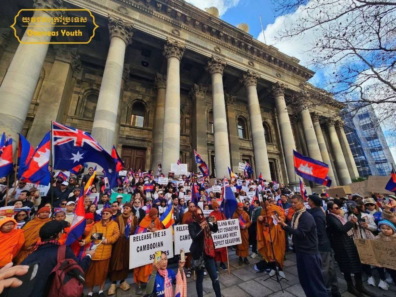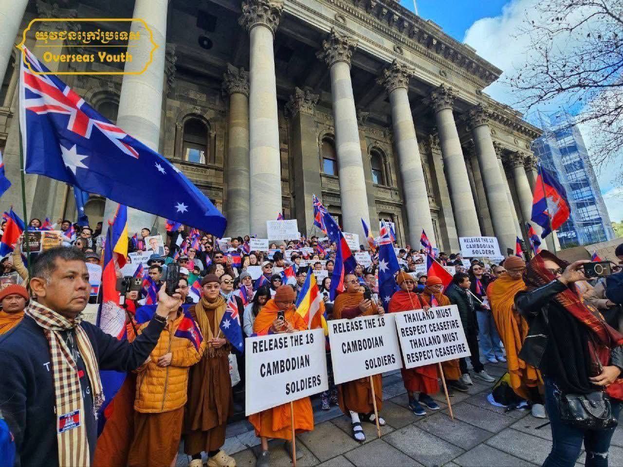 Thousands of monks and citizens living in Adelaide, South Australia, gathered on August 17, 2025, to request the international community to intervene and ask Thailand to respect the ceasefire for the sake of peace. They also appealed to the Thai side to unconditionally release 18 Cambodian soldiers who were arrested by Thailand to their homeland.