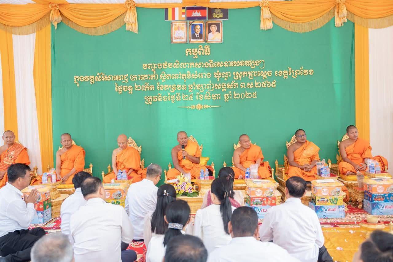 (ព្រៃវែង)៖ នាព្រឹកថ្ងៃទី២៥ ខែសីហា ឆ្នាំ២០២៥ ឯកឧត្តម សួន សុម៉ាលីន អភិបាលខេត្តព្រៃវែងបានអញ្ជើញជាអធិបតីបញ្ចុះបឋមសិលាសាងសង់សមិទ្ធផលនានា នៅវត្តសិរីសារពេជ្ញ (តាគោក) ស្ថិតក្នុងភូមិសំរោង ឃុំល្វា ស្រុកព្រះស្តេច ខេត្តព្រៃវែងព្រមទាំងមានការអញ្ជើញចូលរួមពីមន្ទីរអង្គភាព និងប្រជាពលរដ្ឋយ៉ាងច្រើនកុះករ។