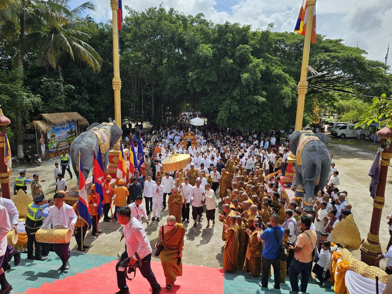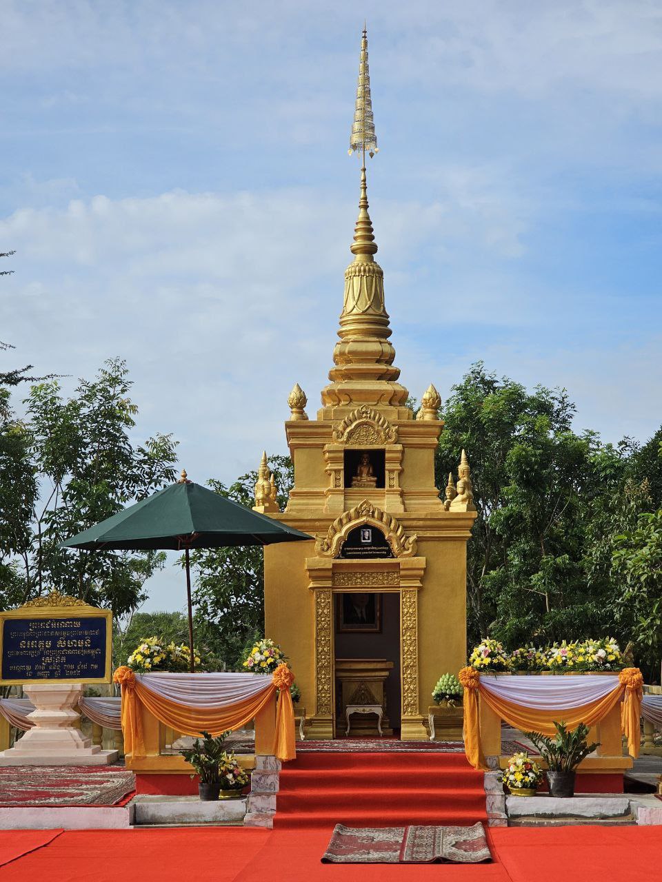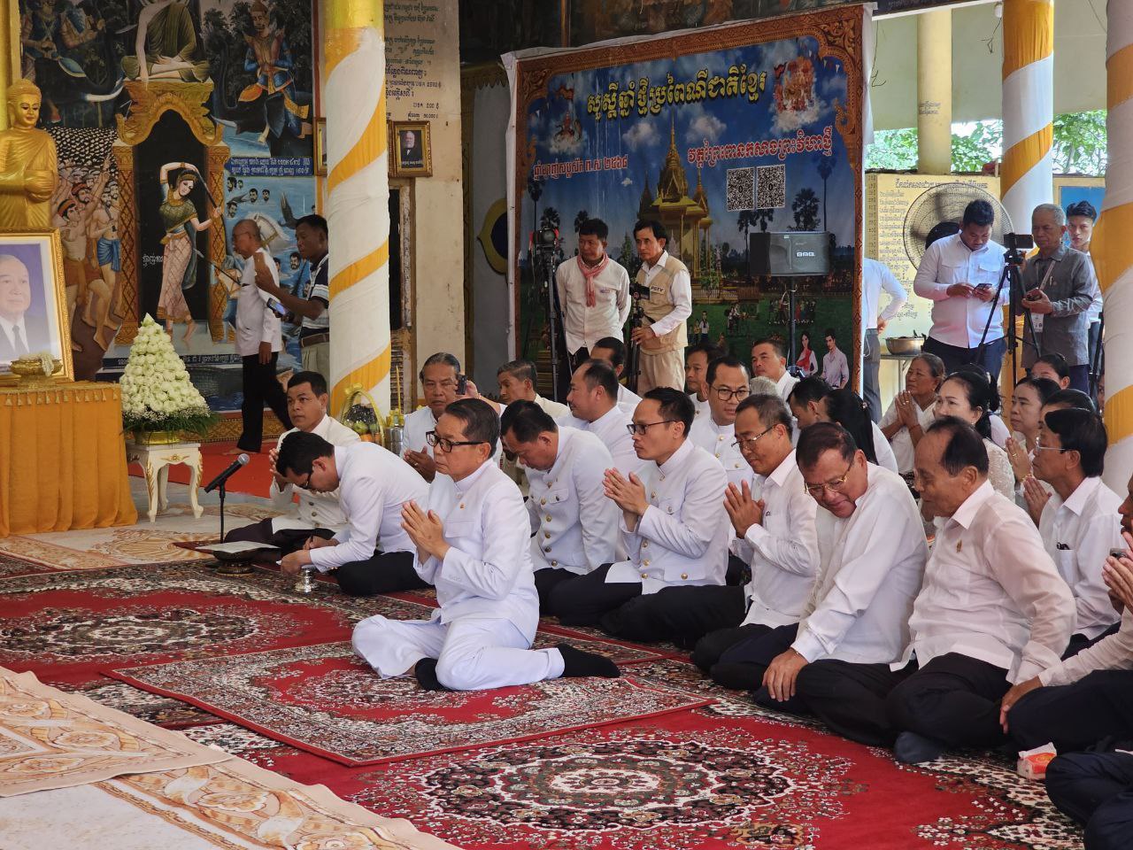 (ព្រៃវែង)៖ នៅថ្ងៃព្រហស្បតិ៍ ១២កើត ខែភទ្របទ ឆ្នាំម្សាញ់ សប្តស័ក ព.ស.២៥៦៩ ត្រូវនឹងថ្ងៃទី០៤ ខែកញ្ញា ឆ្នាំ២០២៥ ឯកឧត្ដម ស្បោង សារ៉ាត ប្រធានក្រុមប្រឹក្សាខេត្ត និងឯកឧត្តម សួន សុម៉ាលីន អភិបាលខេត្តព្រៃវែង បានអញ្ជើញចូលរួមពិធីដង្ហែយាងព្រះបរមអដ្ឋិធាតុព្រះករុណាព្រះបាទសម្តេចព្រះ នរោត្តម សីហនុ ព្រះមហាវីរក្សត្រ ព្រះវររាជបិតាឯករាជ្យ បូរណភាពទឹកដី និងឯកភាពជាតិខ្មែរ “ព្រះបរមរតនកោដ្ឋ” ស្ថិតក្រោមព្រះរាជធិបតីដ៏ខ្ពង់ខ្ពស់សម្តេចព្រះអភិសិរីសុគន្ធាមហាសង្ឃរាជាធិបតី កិត្តិឧទ្ទេសបណ្ឌិត បួរ គ្រី សម្តេចព្រះមហាសង្ឃរាជ នៃគណៈធម្មយុត្តិកនិកាយ និងជាព្រះប្រធានគណៈសង្ឃនាយក នៃគណៈធម្មយុត្តិកនិកាយនៃព្រះរាជាណាចក្រកម្ពុជាតម្កល់គោរពបូជាក្នុងទីព្រះបរមចេតិយ វត្តព្រៃពោន ភូមិព្រៃពោន ឃុំព្រៃពោន ស្រុកកំពង់ត្របែក ខេត្តព្រៃវែង។