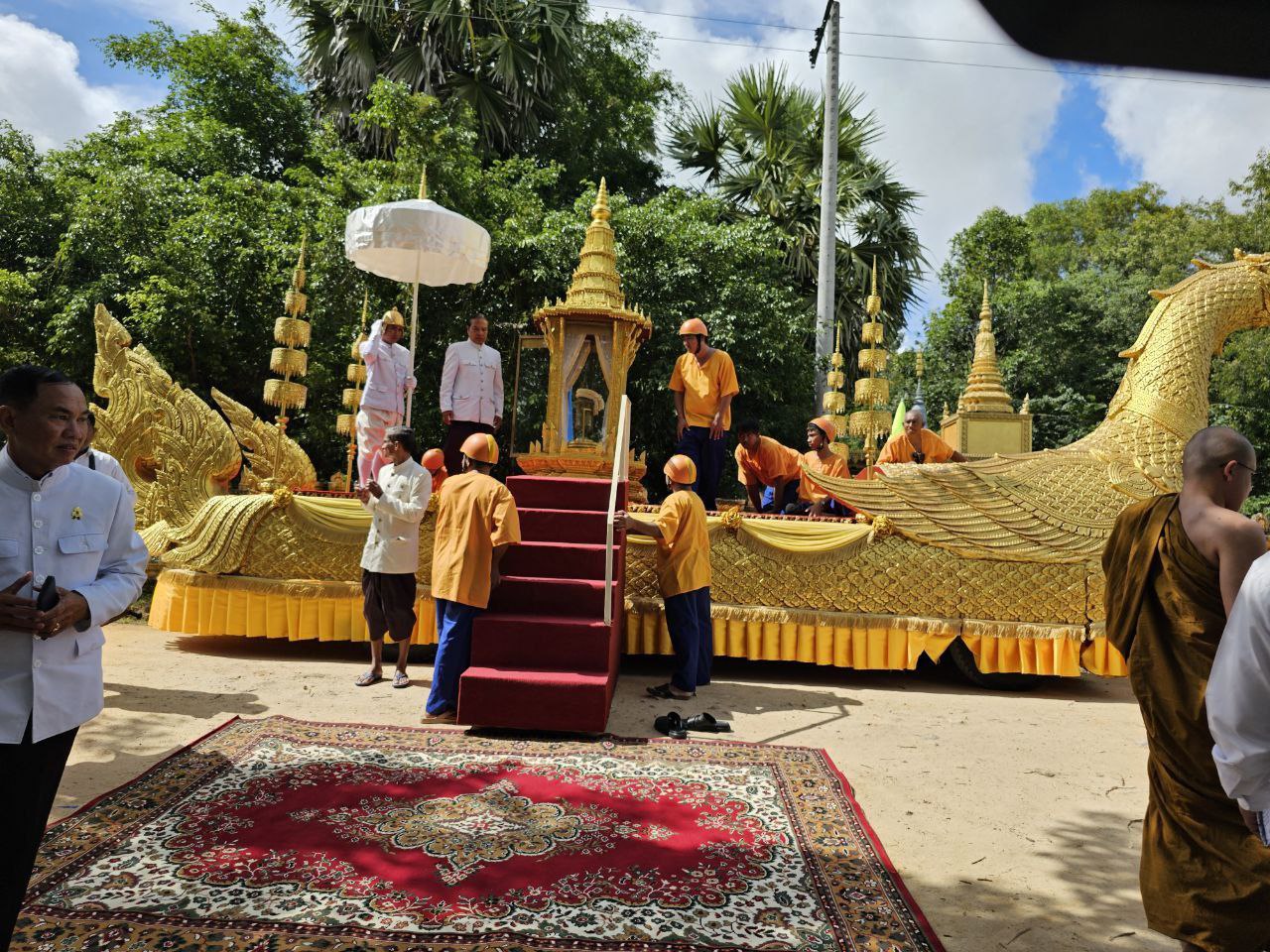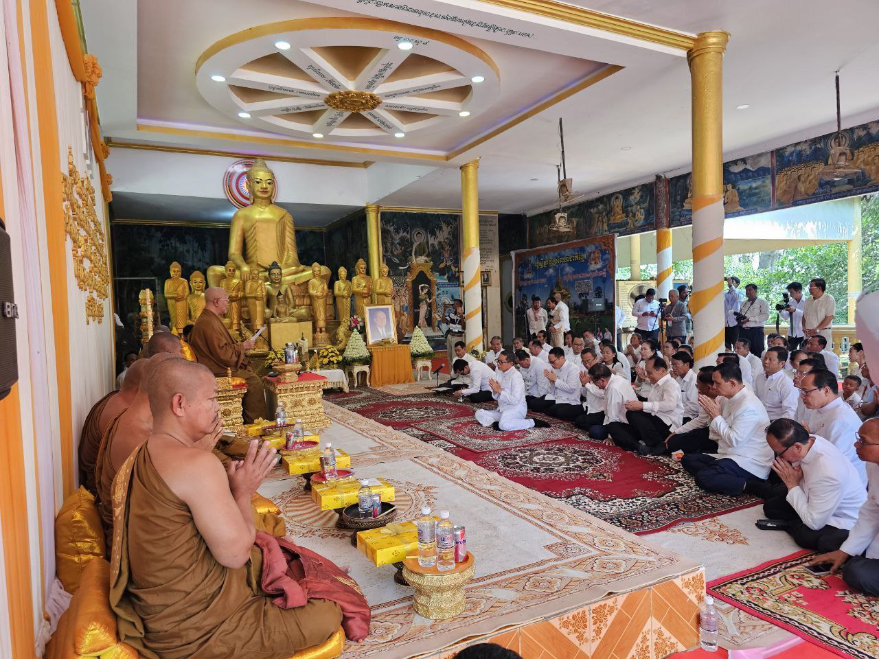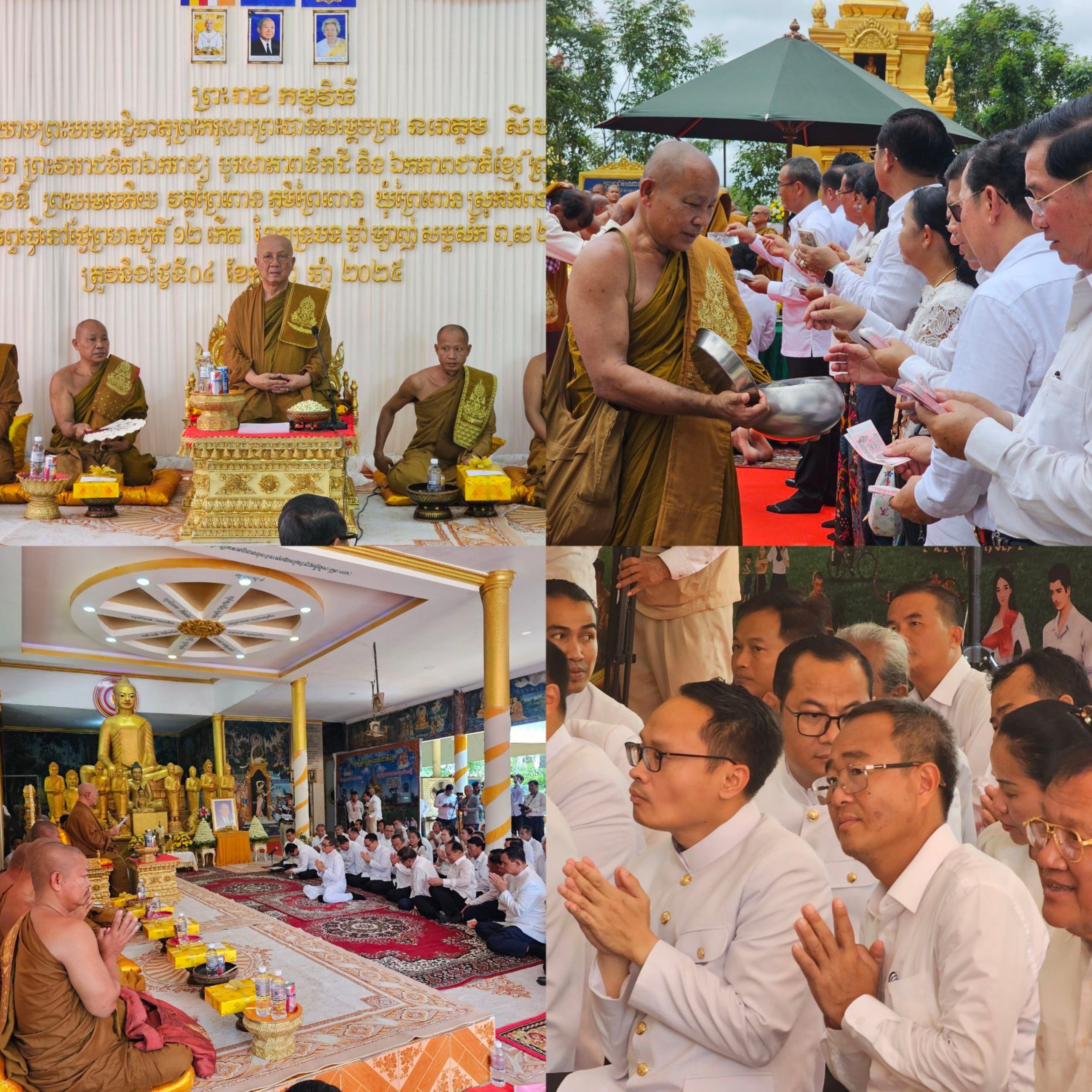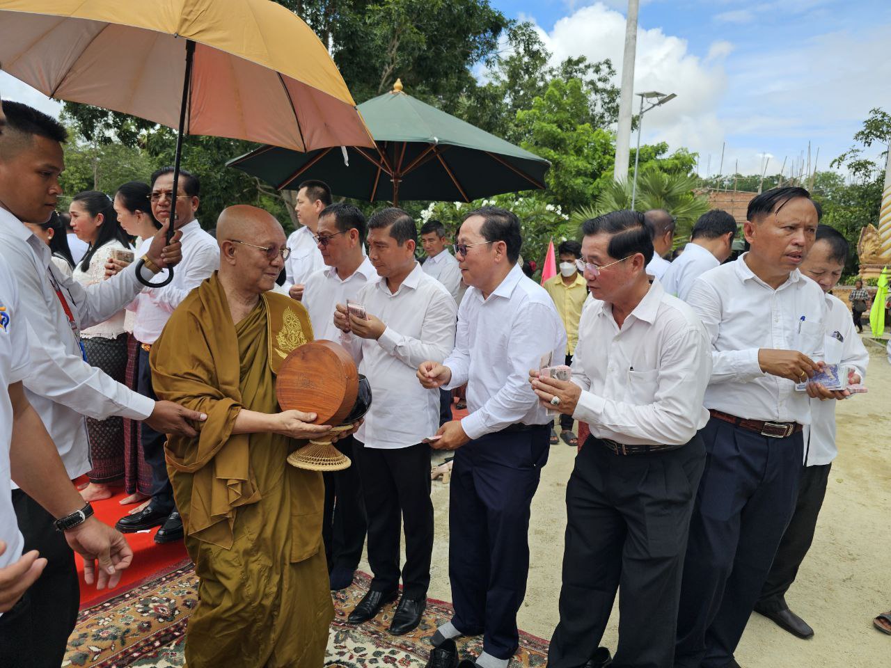 (ព្រៃវែង)៖ នៅថ្ងៃព្រហស្បតិ៍ ១២កើត ខែភទ្របទ ឆ្នាំម្សាញ់ សប្តស័ក ព.ស.២៥៦៩ ត្រូវនឹងថ្ងៃទី០៤ ខែកញ្ញា ឆ្នាំ២០២៥ ឯកឧត្ដម ស្បោង សារ៉ាត ប្រធានក្រុមប្រឹក្សាខេត្ត និងឯកឧត្តម សួន សុម៉ាលីន អភិបាលខេត្តព្រៃវែង បានអញ្ជើញចូលរួមពិធីដង្ហែយាងព្រះបរមអដ្ឋិធាតុព្រះករុណាព្រះបាទសម្តេចព្រះ នរោត្តម សីហនុ ព្រះមហាវីរក្សត្រ ព្រះវររាជបិតាឯករាជ្យ បូរណភាពទឹកដី និងឯកភាពជាតិខ្មែរ “ព្រះបរមរតនកោដ្ឋ” ស្ថិតក្រោមព្រះរាជធិបតីដ៏ខ្ពង់ខ្ពស់សម្តេចព្រះអភិសិរីសុគន្ធាមហាសង្ឃរាជាធិបតី កិត្តិឧទ្ទេសបណ្ឌិត បួរ គ្រី សម្តេចព្រះមហាសង្ឃរាជ នៃគណៈធម្មយុត្តិកនិកាយ និងជាព្រះប្រធានគណៈសង្ឃនាយក នៃគណៈធម្មយុត្តិកនិកាយនៃព្រះរាជាណាចក្រកម្ពុជាតម្កល់គោរពបូជាក្នុងទីព្រះបរមចេតិយ វត្តព្រៃពោន ភូមិព្រៃពោន ឃុំព្រៃពោន ស្រុកកំពង់ត្របែក ខេត្តព្រៃវែង។