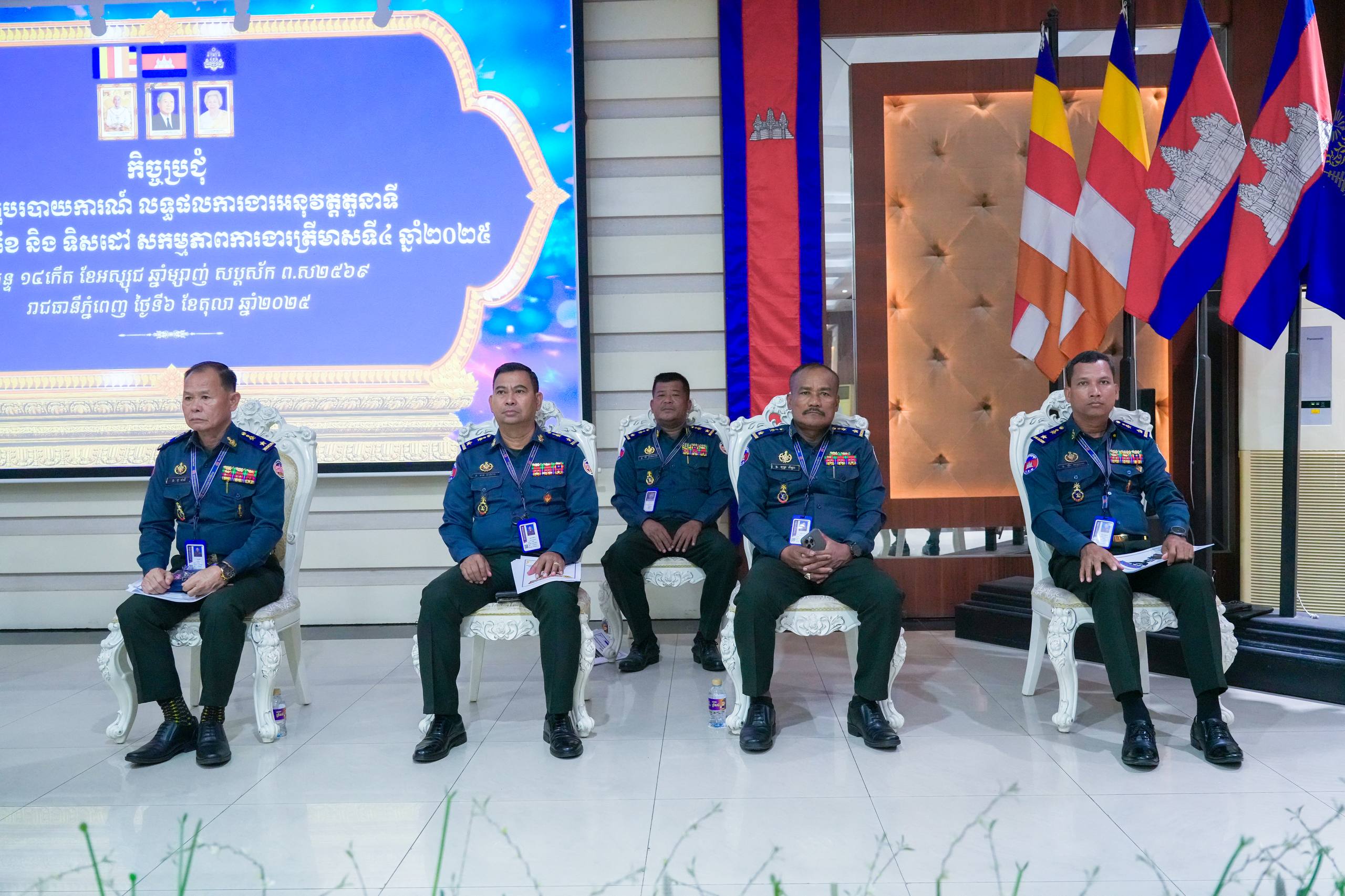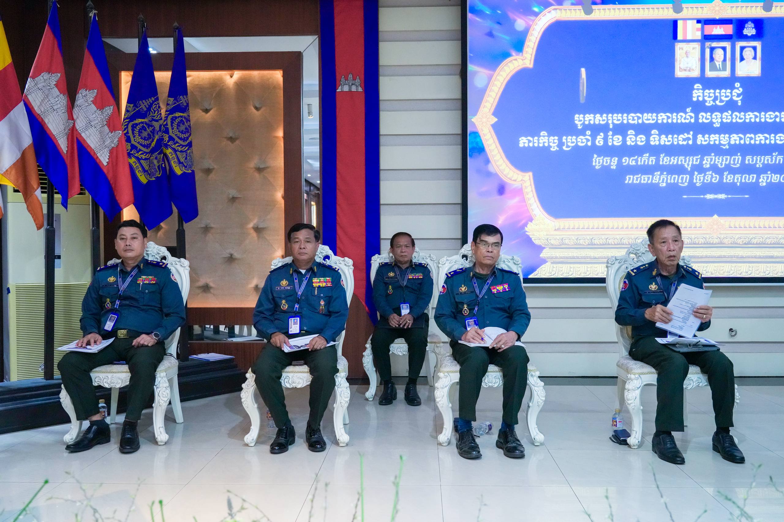 នារសៀល ថ្ងៃទី០៦ ខែតុលា ឆ្នាំ២០២៥ នៅបញ្ជាការដ្ឋានកងរាជអាវុធហត្ថរាជធានីភ្នំពេញ លោកឧត្តមសេនីយ៍ឯក រ័ត្ន ស្រ៊ាង មេបញ្ជាការរងកងរាជអាវុធហត្ថលើផ្ទៃប្រទេស ជាមេបញ្ជាការកងរាជអាវុធហត្ថរាជធានីភ្នំពេញបានអញ្ជើញជាអធិបតីក្នុងកិច្ចប្រជុំផ្សព្វផ្សាយការអនុវត្តតួនាទី ភារកិច្ច ៩ខែ និងលើកទិសដៅសកម្មភាពការងារត្រីមាសទី៤ ឆ្នាំ២០២៥ របស់ កងរាជអាវុធហត្ថលើផ្ទៃប្រទេសដោយមានការចូលរួមពី លោកមេបញ្ជាការរង នាយ-នាយសេនាធិការរង ប្រធានមន្ទីរ នាយ-នាយរងការិយាល័យ លោកមេបញ្ជាការ មូលដ្ឋានអាវុធហត្ថខណ្ឌទាំង១៤ និងលោកមេបញ្ជាការវរសេនាតូចព្រមទាំង នាយ-នាយរង អាវុធហត្ថពាក់ព័ន្ធជាច្រើនរូបទៀតផងដែរ។