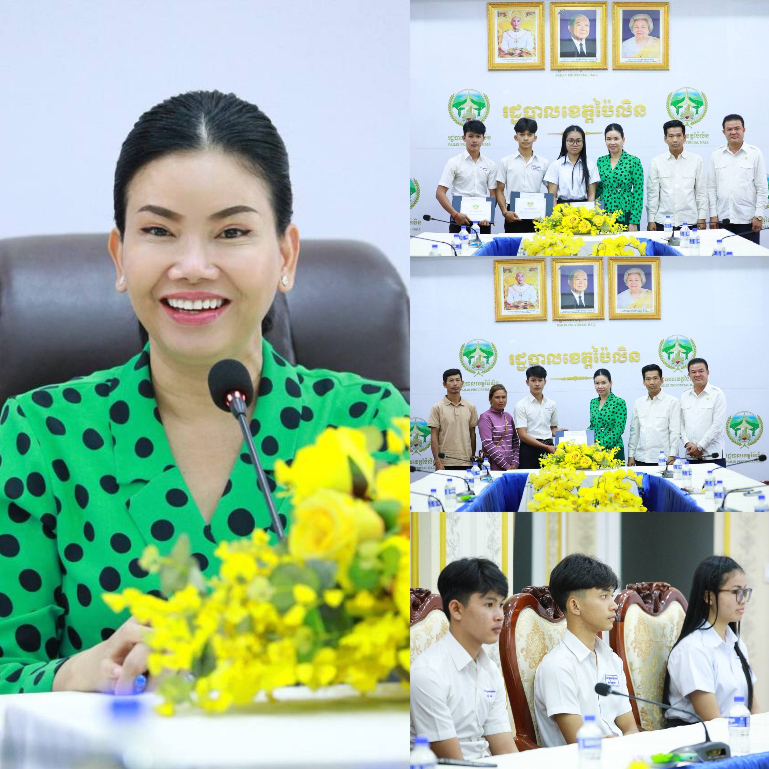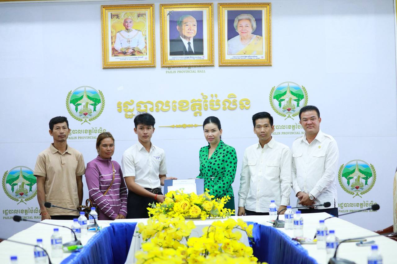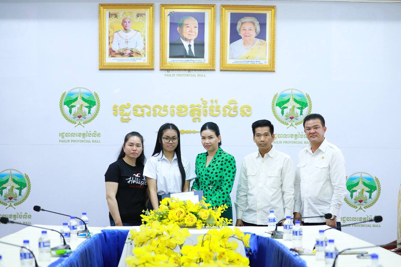 (ខេត្តប៉ៃលិន)៖ លោកជំទាវបណ្ឌិត បាន ស្រីមុំ អភិបាលនៃគណៈអភិបាលខេត្តប៉ៃលិន នាថ្ងៃទី១១ ខែតុលា ឆ្នាំ២០២៥ បានអញ្ជើញជួបសំណេះសំណាល និងផ្តល់រង្វាន់លើកទឹកចិត្តដល់សិស្សប្រឡងជាប់សញ្ញាបត្រមធ្យមសិក្សាទុយិភូមិ ឆ្នាំសិក្សា២០២៤-២០២៥ ដែលទទួលបាននិទ្ទេស A។