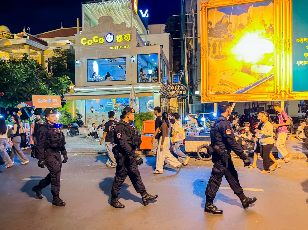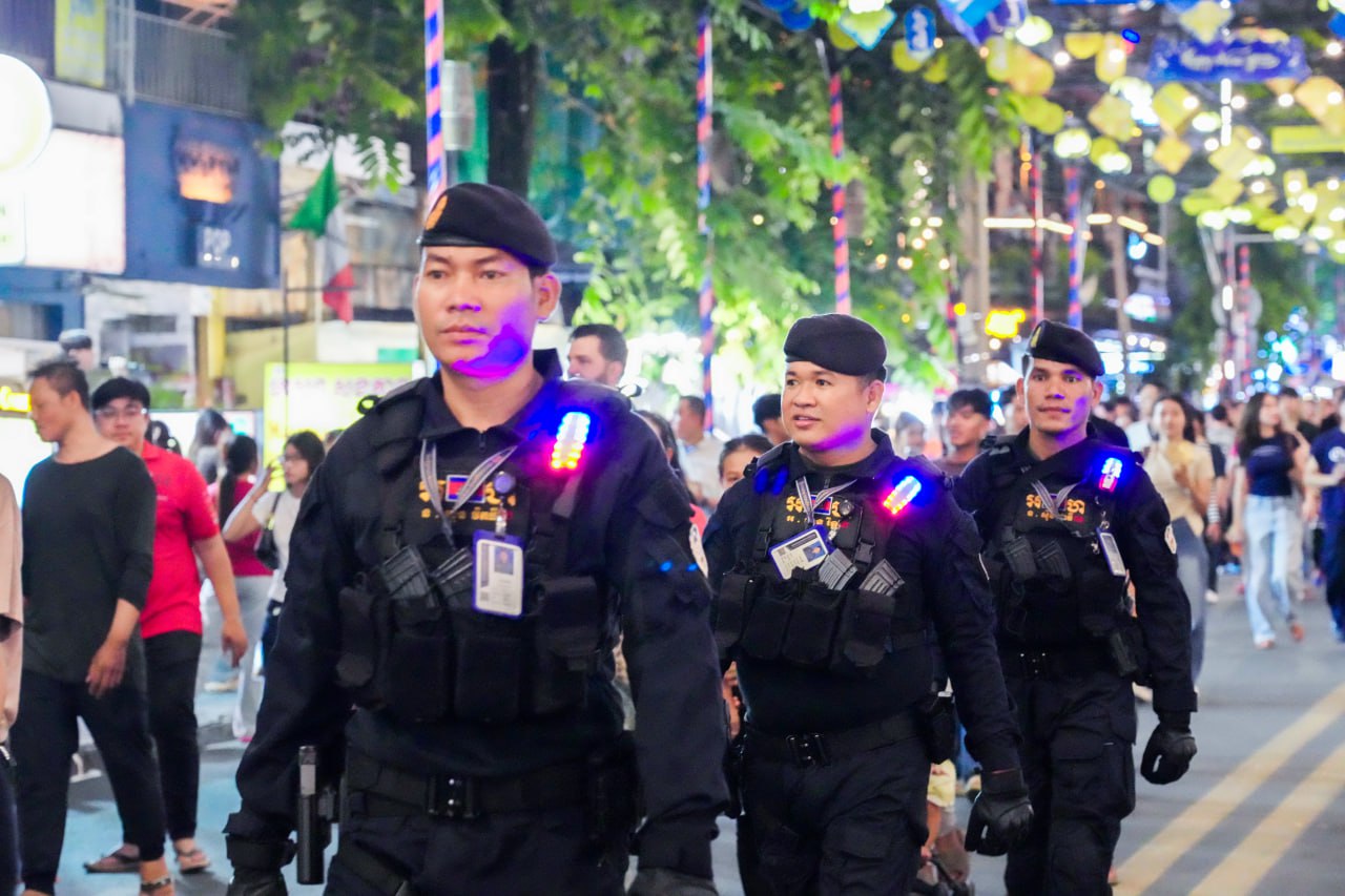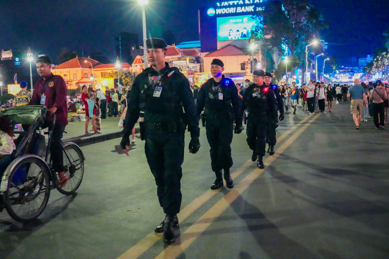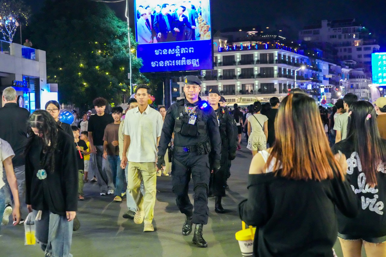 កម្លាំងកងរាជអាវុធហត្ថរាជធានីភ្នំពេញ ចូលរួមល្បាត ការពារសន្តិសុខ សុវត្ថិភាព រក្សាសណ្ដាប់ធ្នាប់ និងសង្គ្រោះបន្ទាន់ ជូនបងប្អូនប្រជាពលរដ្ឋធ្វើដំណើរកំសាន្ត នៅតាមដងផ្លូវថ្មើរជើង (Walk Street) ថ្ងៃទី១៨-១៩ ខែតុលា ឆ្នាំ២០២៥។