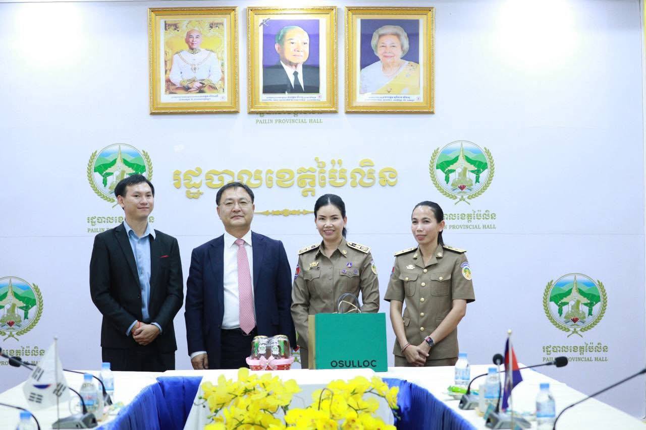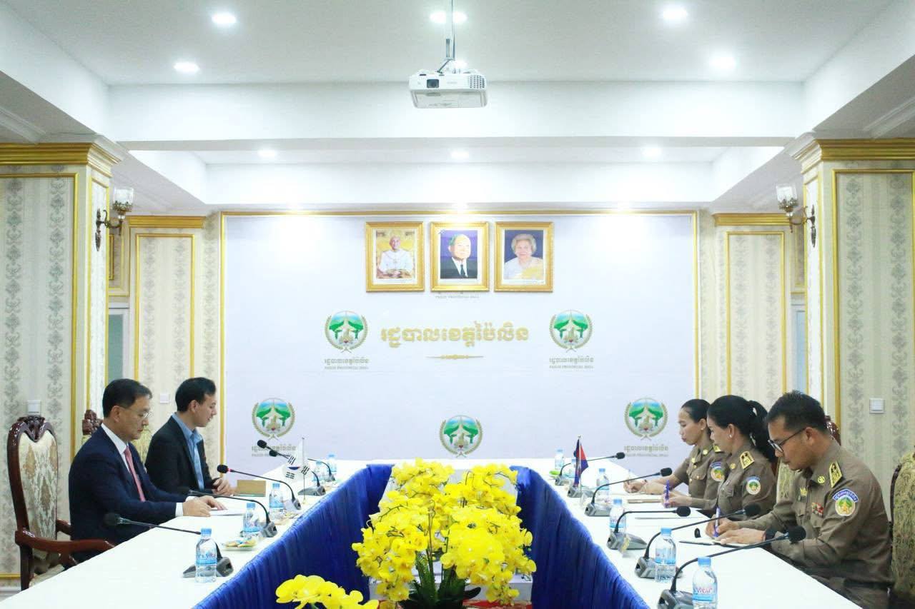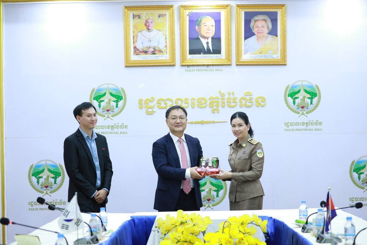 (ខេត្តប៉ៃលិន)៖ លោកជំទាវបណ្ឌិត បាន ស្រីមុំ អភិបាលខេត្តប៉ៃលិនបានទទួលស្វាគមន៍ឯកឧត្តម KIM SUNGTAI អគ្គកុងស៊ុលនៃស្ថានកុងស៊ុលសាធារណរដ្ឋកូរ៉េ ប្រចាំខេត្តសៀមរាប ក្នុងដំណើរទស្សនកិច្ចសិក្សាអំពីស្ថានភាពទូទៅក្នុងខេត្តប៉ៃលិនក្នុងគោលដៅពង្រឹងពង្រីក កិច្ចសហប្រតិបត្តិការលើសក្តានុពលវិស័យកសិកម្ម និងទេសចរណ៍បរិស្ថានធម្មជាតិ។